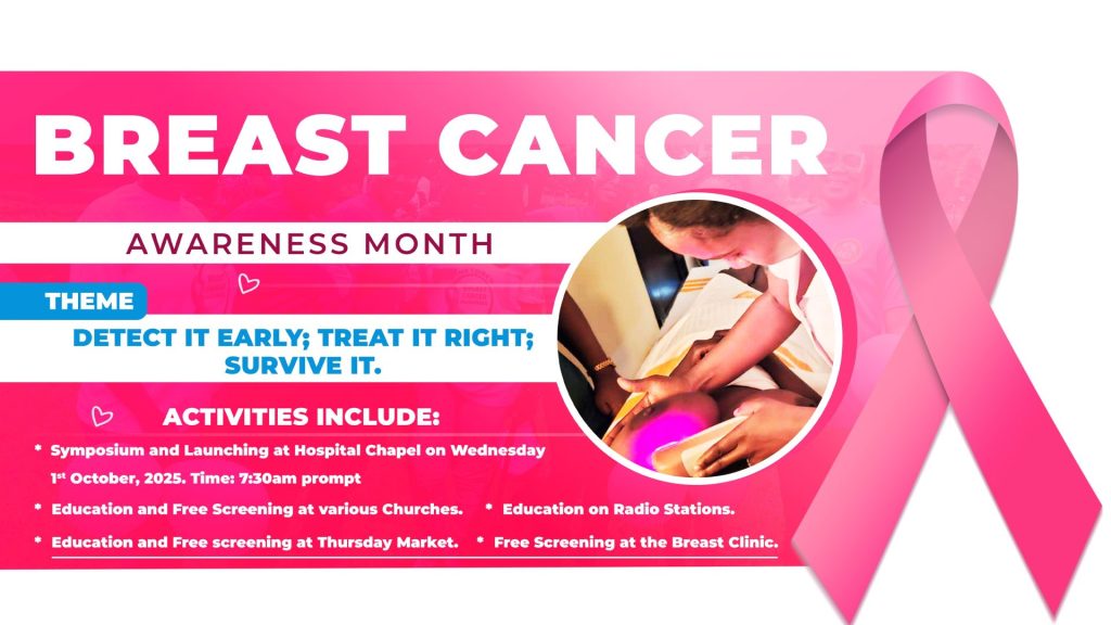 October 1, 2025 — Berekum — In recognition of Breast Cancer Awareness Month, Holy Family Catholic Hospital, Berekum has officially launched its annual Breast Cancer Awareness Campaign under the theme DETECT IT; TREAT IT RIGHT; SURVIVE IT., reinforcing its commitment to promoting early detection, patient education, and comprehensive care for individuals affected by breast cancer.